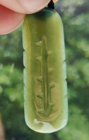 #06 — $35 — Light-coloured pounamu toki (adze shape)