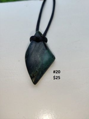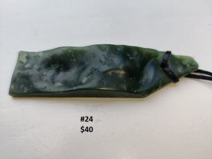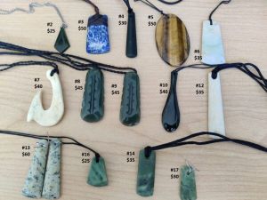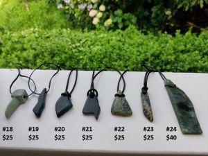 | Pounamu | #02 — $25, #03 — $150 Aotea Stone, 2nd rarest stone in New Zealand, #04 — $30, #05 — $50, #06 — $35, #07 — $40, #08 — $45, #09 — $45, #10 — $40, #12 — $35, #13 — $35, #13 — $60, #14 — $35, #16 — $25, #17 — $30, #18 – $25, #19 – $25, #20 – $25, #21 – $25, #22 – $25, #23 – $25, #24 – $40 |